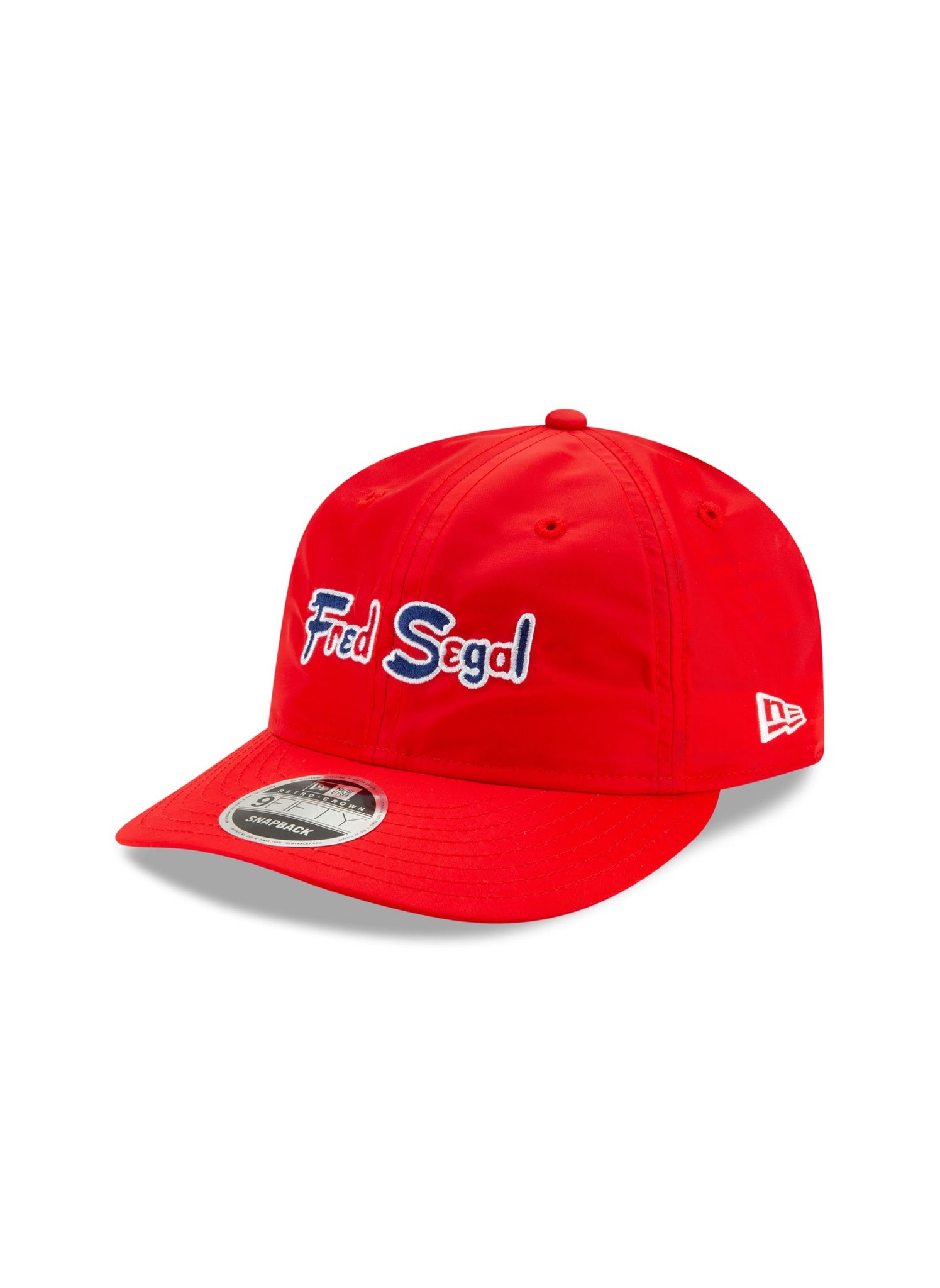 The Fred Segal Retro Crown 9FIFTY Snapback by New Era features a Satin fabrication with an embroidered Fred Segal logo at the front panels and a snapback closure at the rear. Additional details include a custom Fred Segal hangtag and interior lining.